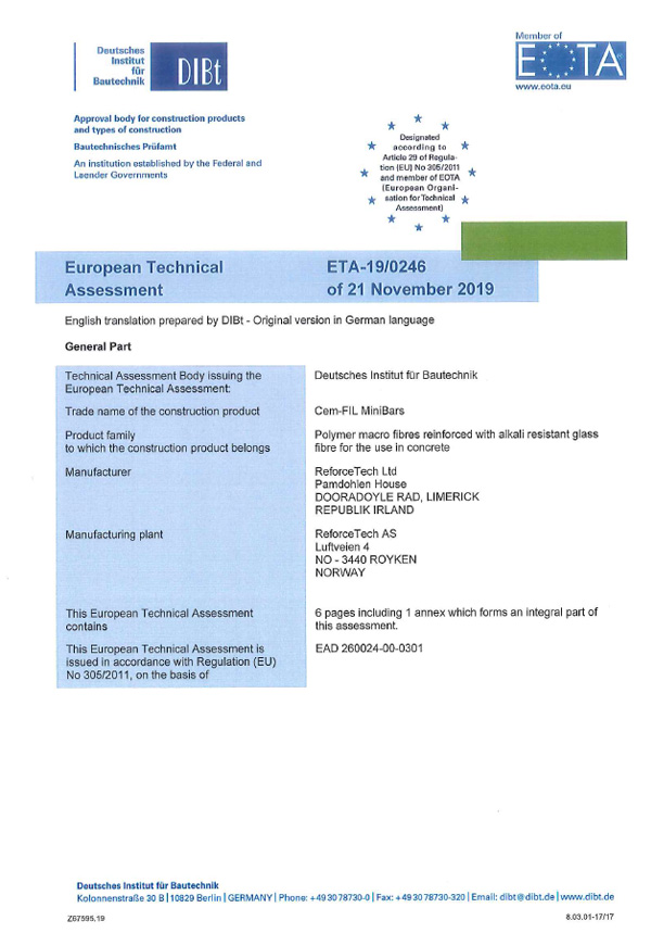 Cem-Fil© MiniBars™ for structural applications made from AR Glass fibres