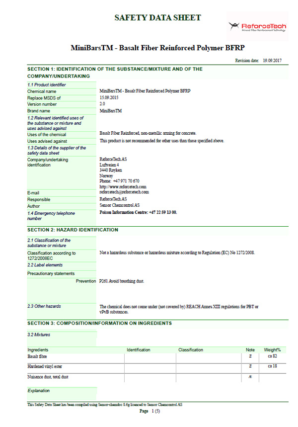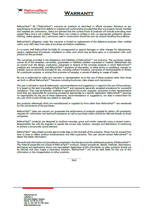 This inherent characteristic of composite glass fiber ensures the expected fiber performance throughout the concrete mass